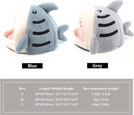 Shark Pet House & Bed for Dogs and Cats, Grey, Large, Modern Style, Polypropylene (PP) and Cotton, Washable, Removable Cushion Mat