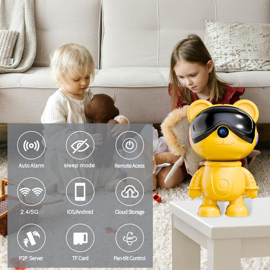 3K Smart Wireless Robot Security Camera - Nanny & Pet Motion Monitor with Mobile App, Baby Cry Detection Alarm, 5G Dual-Band, Pan-Tilt, Full HD Night Vision, 24/7 Recording, and 2-Way Audio